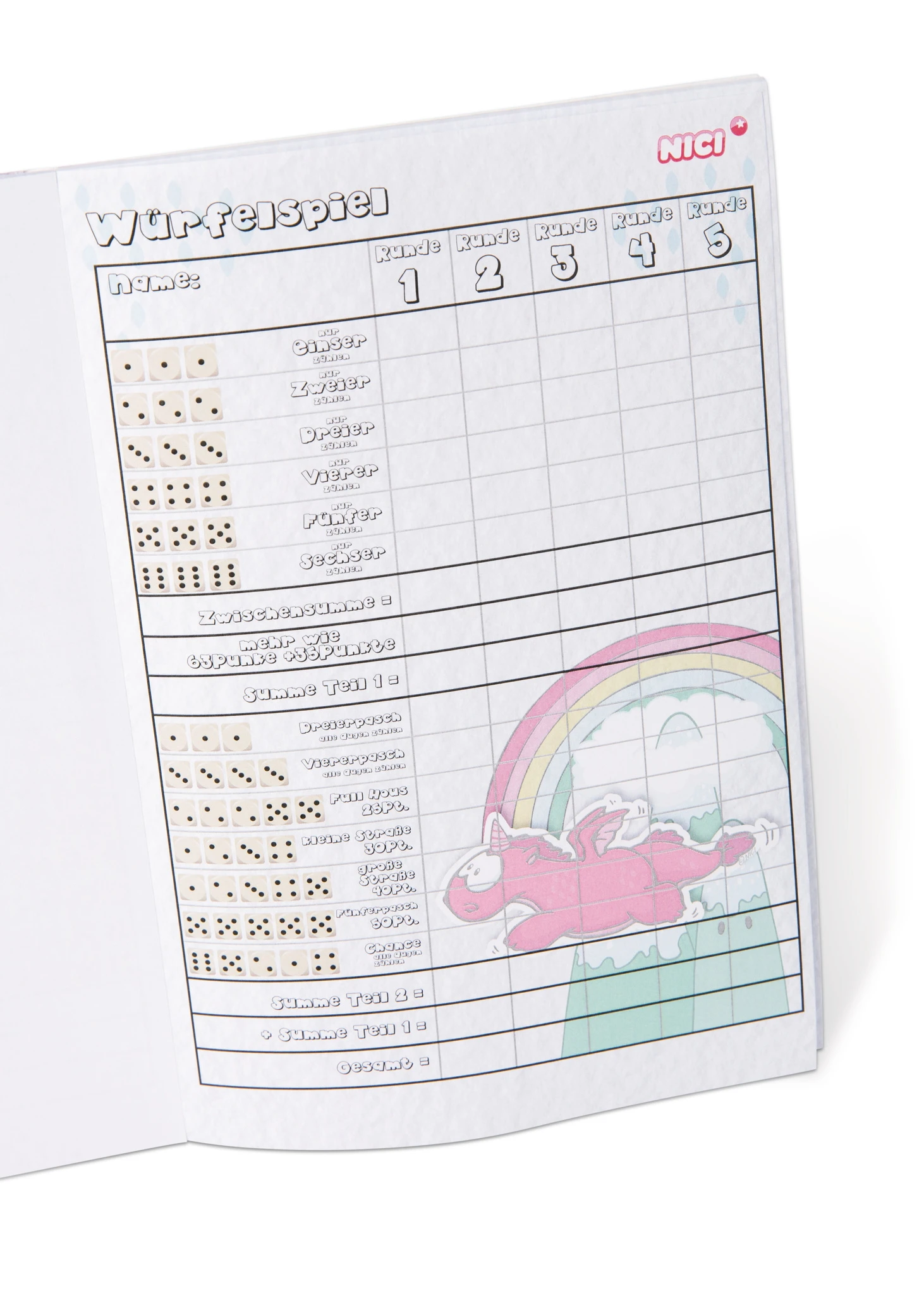Sie erhalten pro Einkauf je 1x diese vier verschiedenen, lustigen Spiele von Einhorn Theodor & Friends