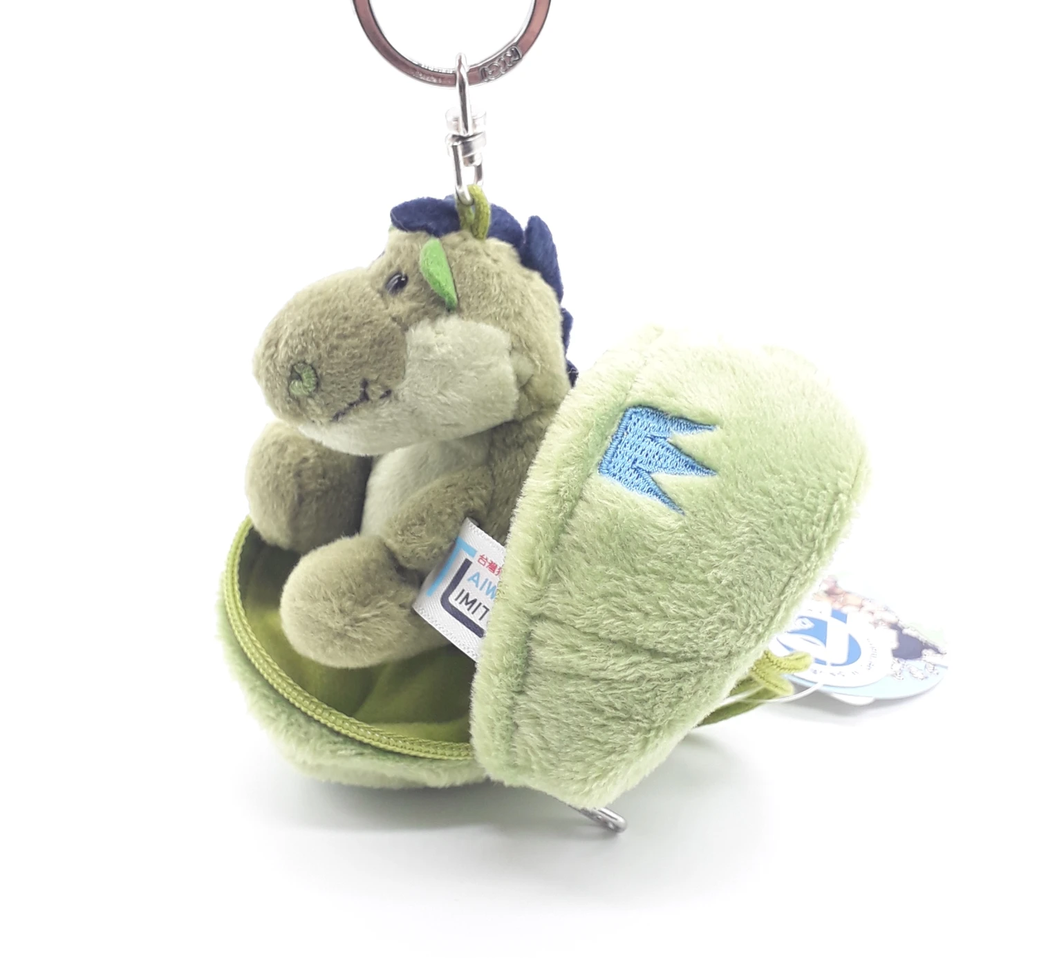 Der kleine Dinosaurier befindet sich im Inneren des Eies. Er ist leicht am Ei befestigt, damit er nicht herausfallen kann. Das Ei lässt sich mittels Reißverschluss öffnen.